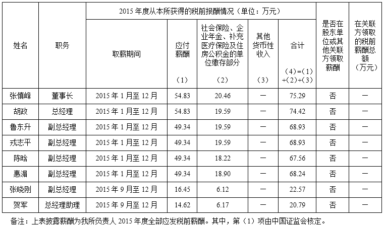 中國金融期貨交易所負(fù)責(zé)人2015年度薪酬情況